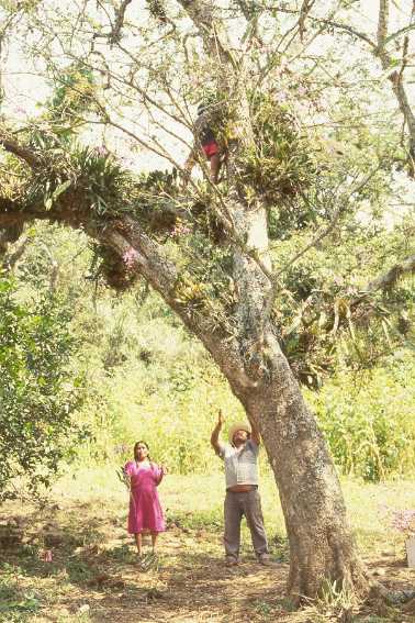 Found in Mexico and Honduras in coffee plantations, pastures, oak and oak/pine forests with a solitary leaf in tall scattered oaks, or on rocks below them or in pastures and coffee plantations, often in full sunlight, at elevations of 500 to 1500 meters as a medium sized, warm to cool growing epiphyte with ovate-oblong, compressed, edges acute, flattened-sides, ribbed pseudobulbs carrying 1 or rarely 2, apical, oblong-lanceolate, leathery, acute leaves that blooms in the autumn to spring in on a terminal cluster, 2 to 4' [60 to 120 cm] long, alternately sheathed, 2 to 6, vanilla scented, long-lasting flowered inflorescence