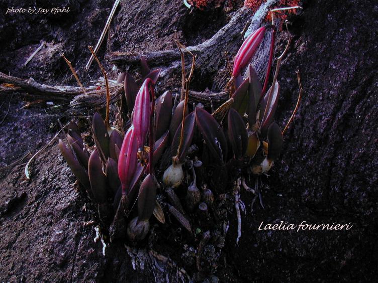 References W3 Tropicos, Kew Monocot list , IPNI ; AOS Bulletin Vol 27 No 11 1958 as L ostermayerii var fourneri; Orchid Digest No 38 No 2 1974 photo fide; Orchid Digest Vol 48 No 1 1984 as L lucasiana var fourneri photo fide; Orchids Travel By Air A Pictoral Safari Mulder, Mulder-Roelfsema and Schuiteman 1990 as L lucasiana var fourneri photo fide; Lindleyana Vol 15 No 2 2000 as Sophronitis fournieri; Mille et Une Mini Orchideees Roguenant 2009 as Sophronitis fournieri photo good; A Compendium of Miniature Orchid Species Parsons & Gerritsen 2013 as Cattleya fourneri photo fide;