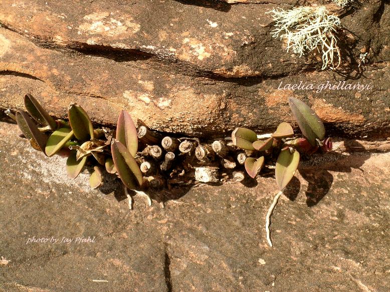 Found as a rupicolus Laelia growing directly on rocks in small cracks and crevasses as a miniature sized, cool to cold growing lithophyte with small, globose pseudobulbs carrying a single, apical, stiff, coriaceous, ovate-lanceolate, acute leaf that blooms in the spring on a terminal, erect, 8 to 10" [20 to 25 cm] long, single flowered inflorescence.