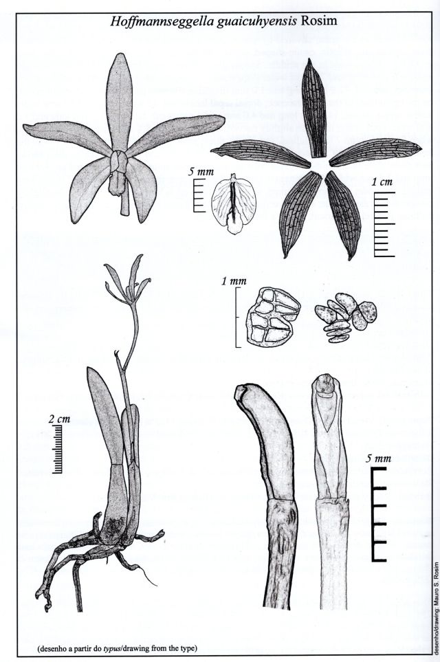 References W3 Tropicos, Kew Monocot list , IPNI ; Coletanea de Orquideas Brasileiras Novas Especies Vol 13 Portalet 2018 as Hoffmannseggella guaicuhyensis photo/drawing fide fide--------------------------------------------------------------------------------------------------------------------