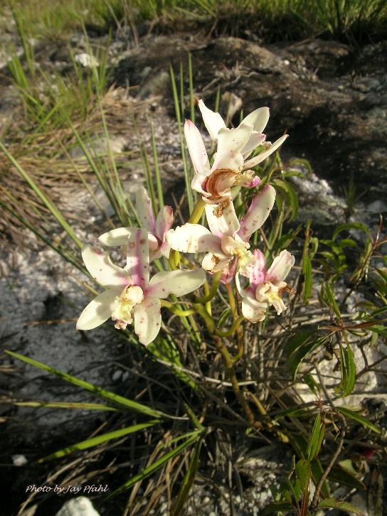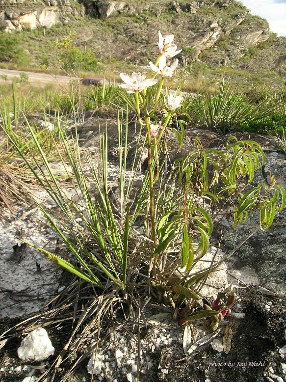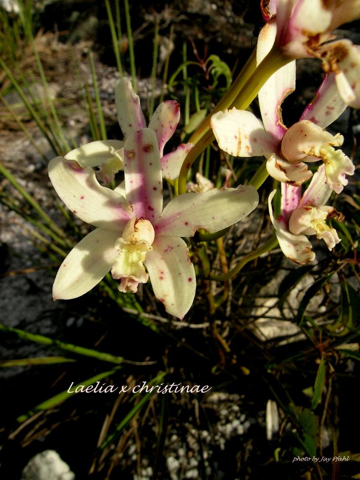 A naturally ocurring primary hybrid of Laelia briegeri and Laelia rupestris. I found this plant growing on the road in between Presidente Kubichek and Datas at an elevation of 1250 meters growing in sand, rocks and some dirt on cap rock with other plants in open range with exposed rock outcroppings. This is a newly named plant as of February 2003. Sorry but this was the only plant we found and it was a day away from being done with flowering. Marcos Campacci and myself thought at the time of encountering the plant that it may be an unnamed Laelia hybrid but as stated before it had just been published.