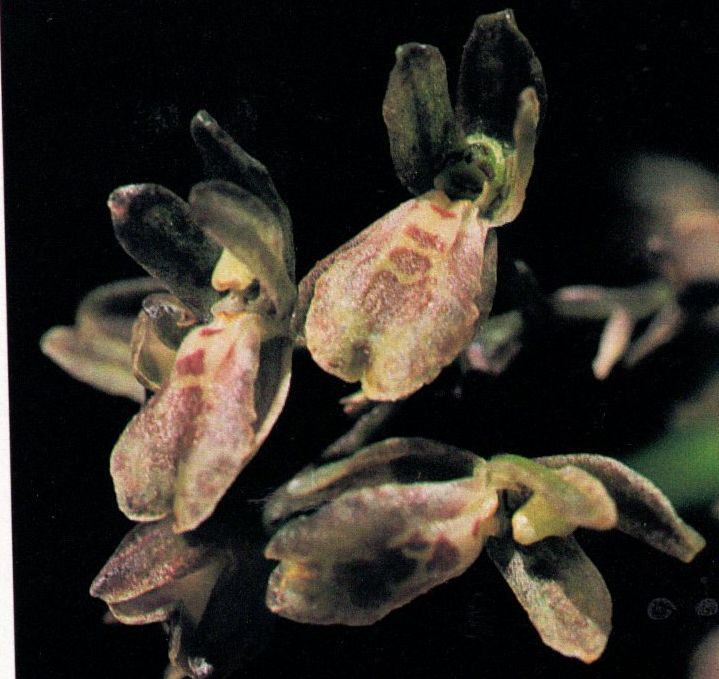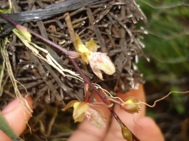 Found in southern Mexico, Guatemala, El Salvador, Honduras and Nicaragua in wet montane forests at elevations of 1380 to 2200 meters as a mini-miniature sized, cool to cold growing epiphyte with very small, slighly compressed, ovoid pseudobulbs partially enveloped by leaf-bearing sheaths and carrying a single, apical, erect, coriaceous, linear-lanceolate, canaliculate, abruptly attenuate below into the short, conduplicate, petiolate base leaf that blooms in the fall through winter on an axillary, 1.2" [3 cm] long, to 3 flowered inflorescence with a lanceolate, acuminate floral bract.