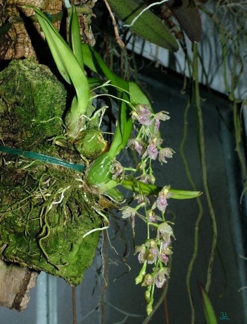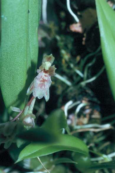 Found in southern Pacific coastal Mexico, Guatemala and Honduras at elevations of 500 to 1500 meters as a miniature to medium sized, warm to cool growing epiphyte on small branches of evergreen trees along streams, with ovate to elliptic, compressed pseudobulbs that carries one or two, oblong-lanceolate to elliptic-lanceolate, acute leaves carrying fragrant flowers that appear in the fall and winter on a pendant, 6.4" [16 cm] long, few to many [1 to 15] flowered inflorescence.