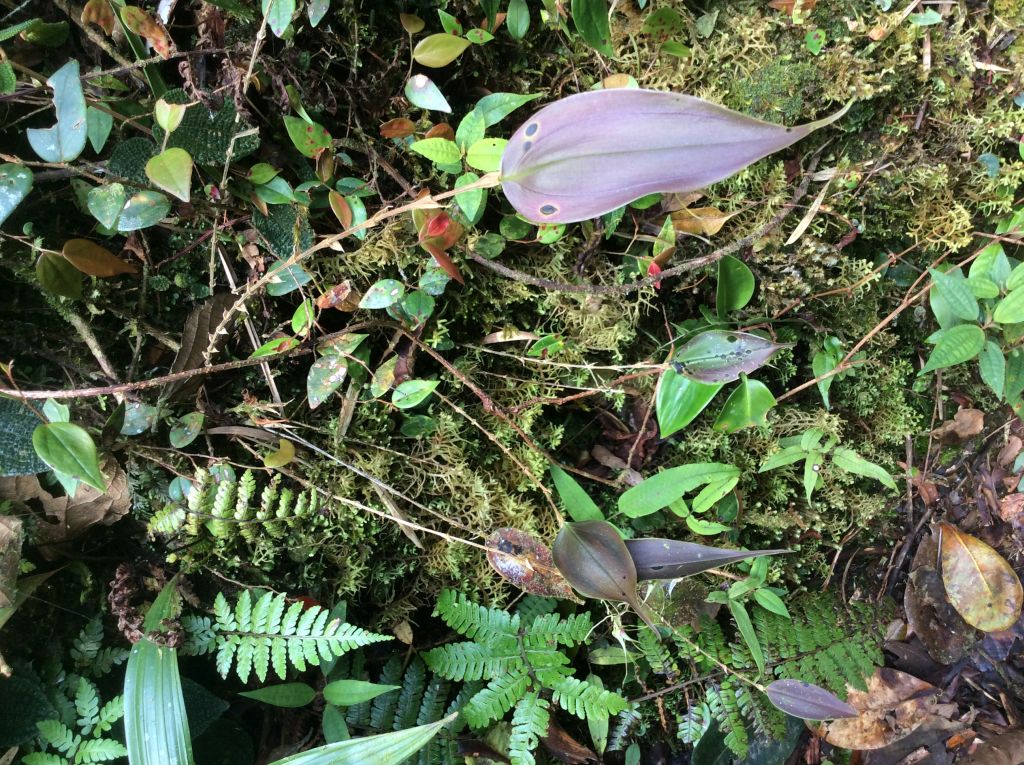 Leaf from above in situ La Messinia Reserve Antioquia/Risaralda Colombia 3/20