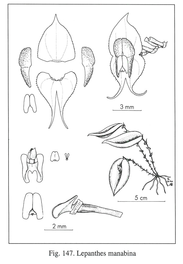 References W3 Tropicos, Kew Monocot list , IPNI ; Icones Planetarum Tropicarum plate 128 Dodson 1980 drawing hmm; * Phytologia 54:352 Luer 1983 as L mastodon; Native Colombian Orchids Vol 2 COS 1991 Photo fide to the L mastodon photo; Icones Pleurothallidinarum Vol XIV Systematics of Draconanthes, Lepanthes subgenus Marsipanthes and subgenus Lepanthes of Ecuador Luer 1996 drawing fide; Native Ecuadorian Orchids Vol 2 Dodson 2001 drawing ok; Flora of Ecuador No 88 Lepanthes and affiliates Dodson & Luer 2011 drawing fide; Icones Pleurothallidinarum Vol XXXII Luer 2012 drawing fide; Orchids, A Colombian Treasure Vol 3 Ortiz & Uribe 2019 drawing/PHOTO fide; Orquideas de Farallones de Cali Galindo-Tarazona, Haelterman, Zuluaga Trochez and Sebastian Moreno 2020 photo fide
