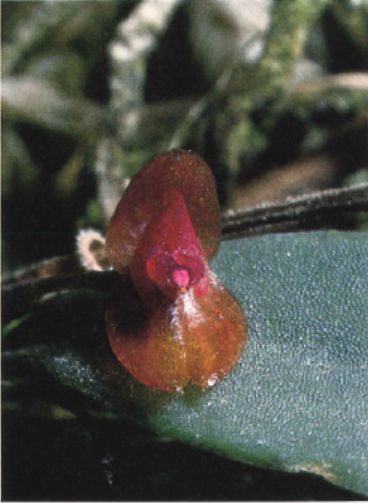 "The specis is recognized by the reddish flowers, the mini-minature sized plant with elliptica leaves and the petals with a very small lower lobe. It is somewhat similar to L papillipetala and L parvula with which this species is sympatric but it can be distinguished by the much bigger flowers up to .22" [5.5 mm] tall and the narrower leaves. Also similat to L stenophylla and its relatives but this specis can be distinguished from them by the reddish flowers with the laminae of the petals papillose-pilose. La planta de El Salvador ilustrada por Hamer (1981: p. 133, pI. 6), e identificada como ORQUIDEA (MEX.) 14. SEPTIEMBRE 1996 Lepanthes ancylopetala, representa una forma de L. papillipetala Dressler