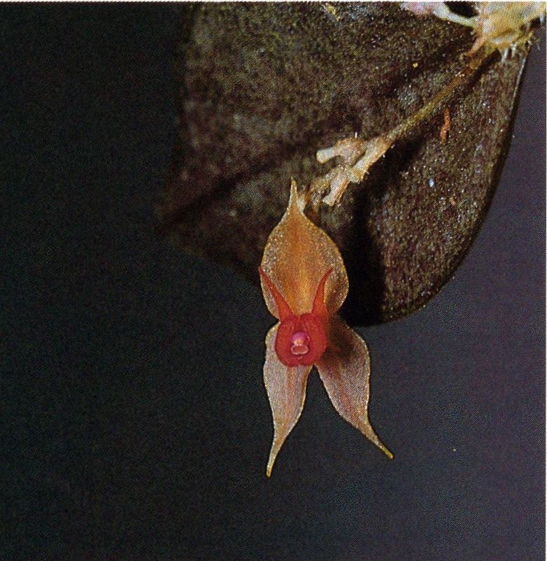 Found in Norte de Santander department of Colombia at elevations around 2000 to 3150 meters as a mini-miniature sized, cold growing epiphyte with erect, stout ramicauls enveloped by 5 to 7, long-pubescent lepanthiform sheaths with dilated ostia and carrying a single, erect, coriaceous, ovate, acute, rounded and contracted below into the petiolate base leaf that blooms in the later spring and summer on a filiform, congested, distichous, .93" [ 2.3 cm] long including the .48 to .6" [8 mm] long peduncle, successively few flowered inflorescence arising on the back of the leaf.