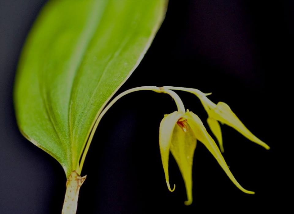 Found in southern Colombia in the department of Cauca near el Vulcan de Purace at elevations of 2900 to 3200 meters as a miniature sized, cold growing epiphyte with erect, stout, superposed ramicauls enveloped by 12 to 13, lepanthiform sheaths with microscopically scabrous margins and carrying a single, apical, erect, coriaceous, elliptical-ovate, acute, shortly acuminate, cuneate to rounded below into the petiolate base leaf that blooms in the late fall through spring on a slender, loose, 1.6 to 2" [4 to 5 cm] long including the 1 to 1.4" [2.5 to 3.5 cm] long peduncle, successively single, few flowered inflorescence with acute floral bracts.