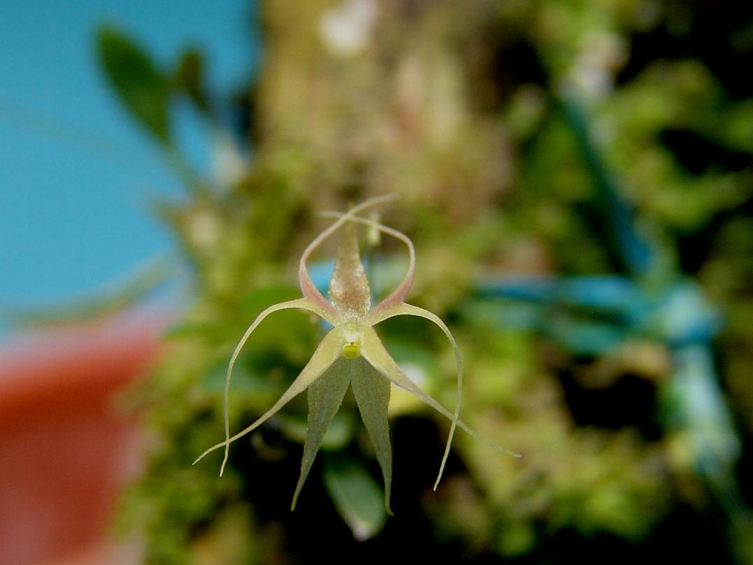 Found in the Department of Valle de Cauca, Colombia in wet premontane and montane forests near the Calima dam at elevations of 1500 to 1750 meters as a mini-miniature sized, cool growing epiphyte with erect ramicauls enveloped by 2, short, lepanthiform sheaths and carrying a single, apical, erect, elliptic, narrowing below to form a short, petiolate base leaf that blooms in the winter through early spring on a filiform, longer than the leaf, .8 to 1.2" [2 to 3 cm] long, successively single, few flowered inflorescence carrying rather large flowers for the size of the plant