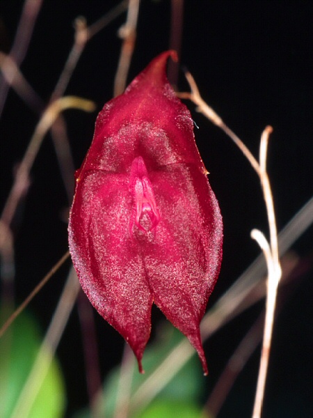 Found in Venezuela in dwarf cloud forests at elevations of 2500 to 2600 meters as a mini-miniature sized, cold growing epiphyte with erect ramicauls enveloped by 4 to 6 lepanthiform sheaths and carrying a single, apical, erect, elliptic, rounded, gradually narrowing below into the base leaf that blooms in the fall on a successively single, few flowered inflorescence.