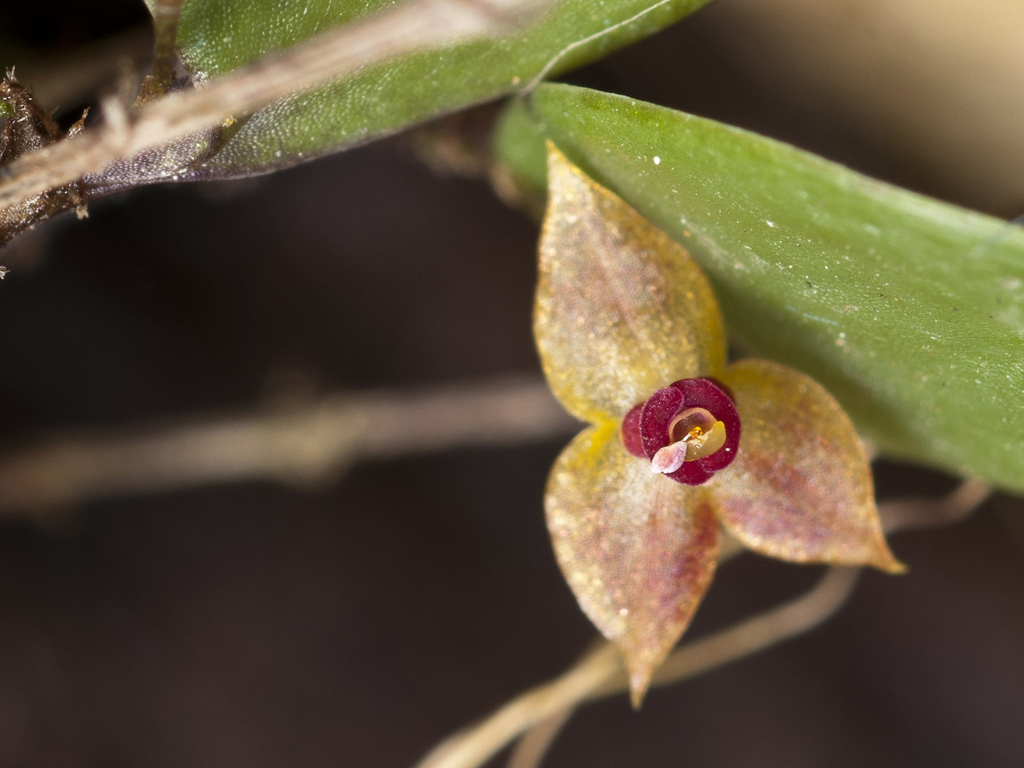 Found Santiago province of Cuba in cloud forests at elevations around 1000 meters as a mini-miniature sized, warm to cool growing epiphyte with slender, erect ramicauls enveloped by 2 to 5, long ciliate, lepanthiform sheaths with dilated ostia and carrying a single, apical, erect, coriaceous, purple suffused beneath, broadly elliptical, shortly acuminate and tridenticulate apically, acute, cuneate below into the petiolate base leaf that blooms in the fall on a slender, congested, .28 to .32" [7 to 8 mm] long, including the .12 to .16" [3 to 4 mm] long peduncle, successively single, few flowered inflorescence.