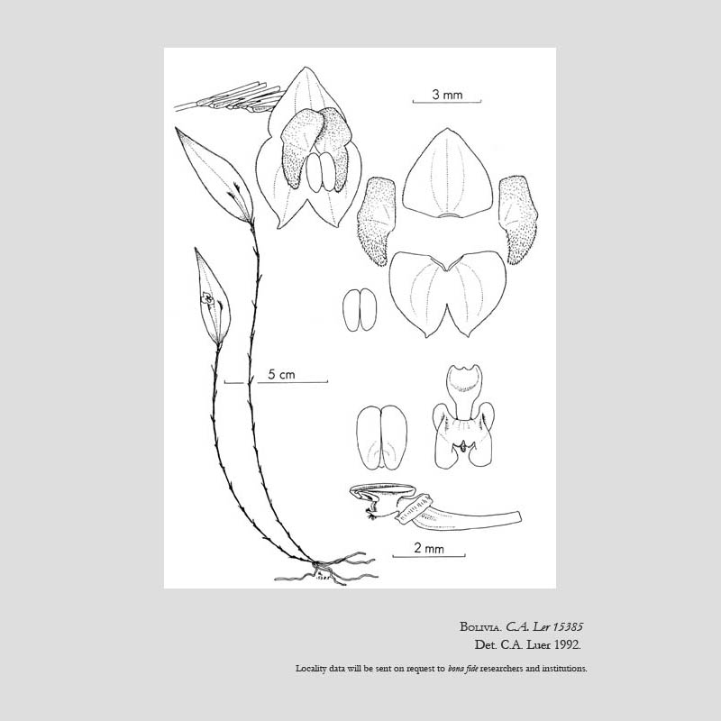 References W3 Tropicos, Kew Monocot list , IPNI ; * Lindleyana 7(2): 103, f. 3. Luer 1992 drawing fide; Icones Pleurothallidinarum Vol XXXII Luer 2012 Luer drawing fide;