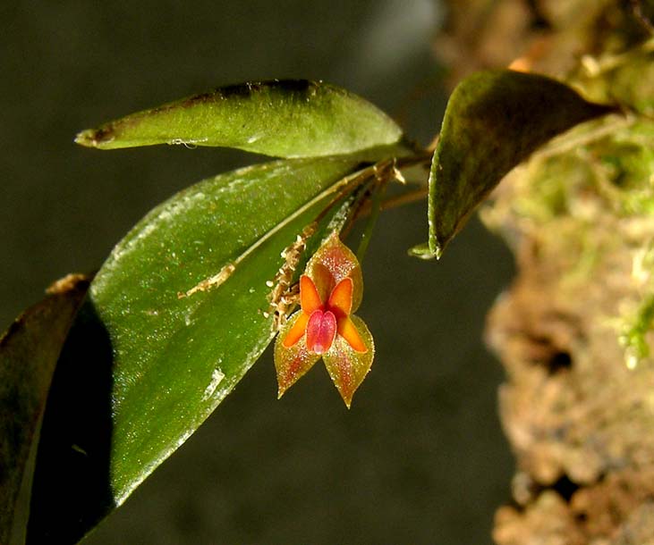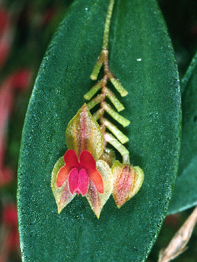 Found in El Salvador, Nicaragua and Costa Rica in montane rain forests or cloud forests as well as fence post trees along pasture lands at elevations of 1300 to 1500 meters as a mini-miniature sized, cool growing epiphyte with a short stem enveloped completely by 2 to 3, lepanthiform sheaths and carrying a single, apical, elliptic to ovate leaf that blooms in the late summer and fall on a terminal, filiform inflorescnece with distichous, successively opening flowers.