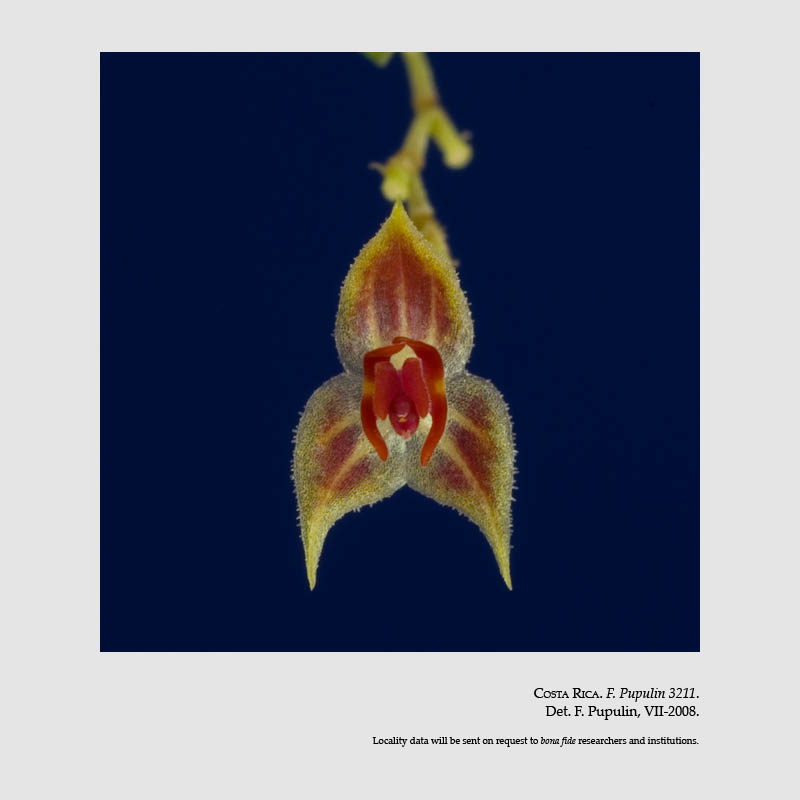 SynonymsReferences W3 Tropicos, Kew Monocot list , IPNI ; Lankester's Epidendra Website CR CHECKED Type OK; *Kew Bull. 59: 560. Pupulin2004 drawing fide; Vanishing Beauty; Native Costa Rican Orchids Vol 2 Lacaena to Pteroglossa Pupulin 2020 photo fide;