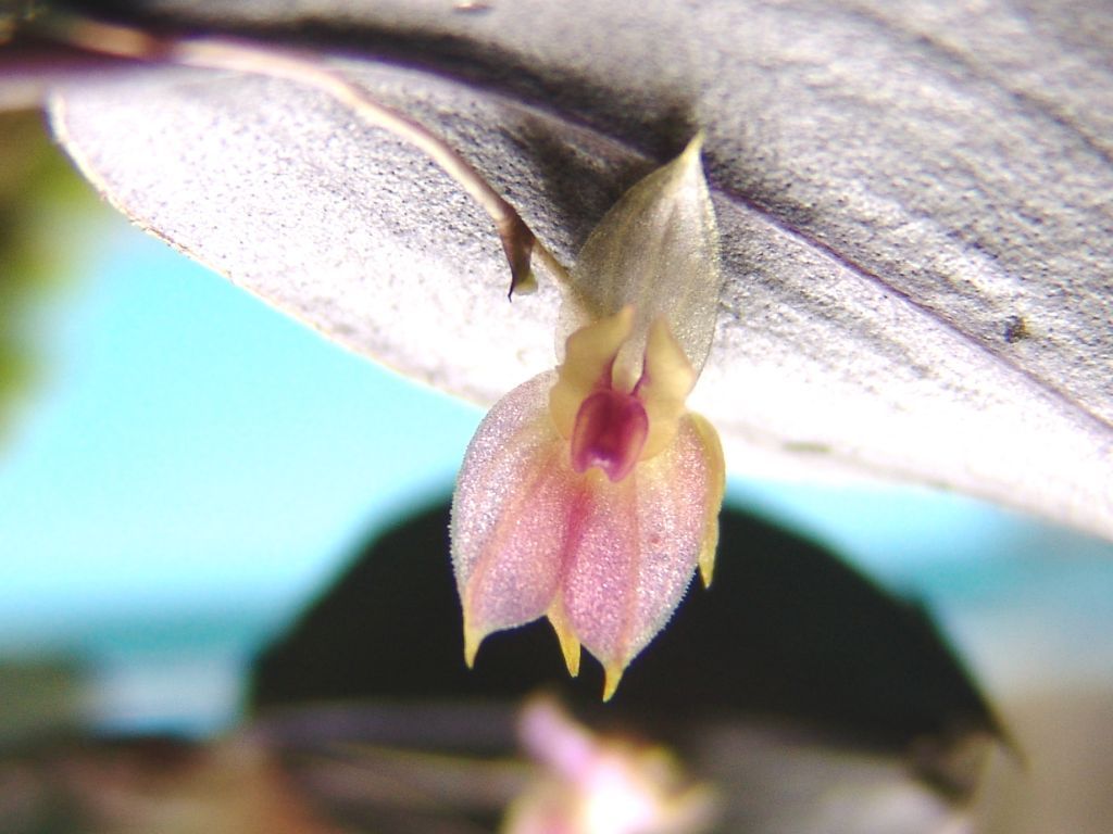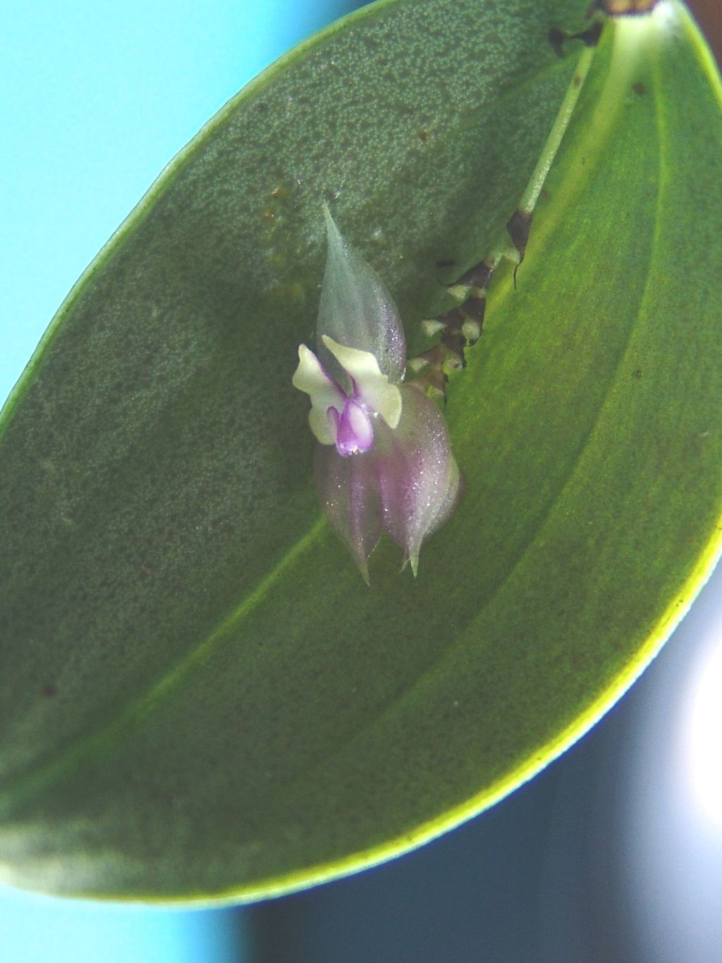 Found in Venezuela, Colombia and Ecuador at elevations of 2600 to 3200 meters as a miniature sized, cold growing epiphyte with erect, stout ramicals enveloped by 10 to 16 ciliate lepanthiform with dilated ostia and carrying a single, apical, erect, coriaceous, elliptical-ovate, subacute, acuminate, apically bilobed, 3, nerved, dark green above, blue green below, often suffused with purple beneath, broadly cuneate, rounded and contracted into the petiolate base leaf that blooms in the spring on acongested, distichous, borne on the back of the leaf, peduncle filiform, .4 to .8" [1 to 2 cm] long, rachis to .8" [2 cm] long, successively to 3, many flowered inflorescence with longer than teh pedicel floral bracts.