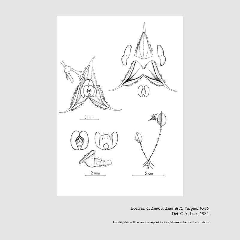 References W3 Tropicos, Kew Monocot list , IPNI ; *Phytologia 55(3): 183 Luer & Vasquez 1984 drawing fide; Icones Pleurothallidinarum Vol XXXI Luer 2010 drawing fide;