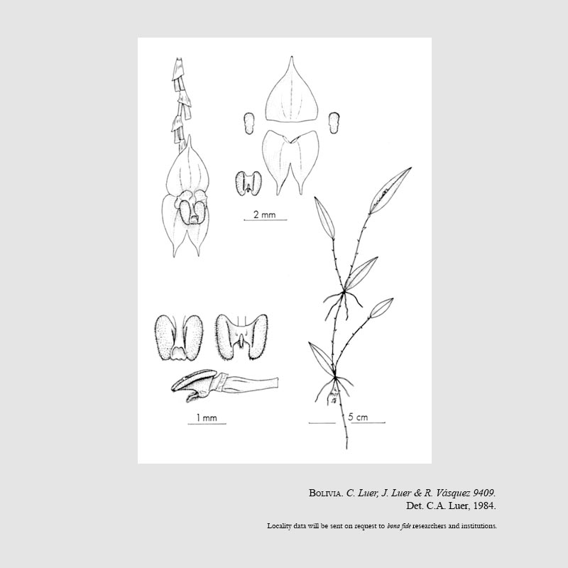 References W3 Tropicos, Kew Monocot list , IPNI ; Phytologia 55(3): 184 Luer & Vasquez 1984 drawing fide; Icones Pleurothallidinarum Vol XXXI Luer 2010 drawing fide;