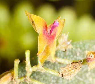 Found in Antioquia department of Colombia in montane forests at elevations around 2150 meters as a mini-miniature sized, cold growing epiphyte with erect, slender ramicauls enveloped by 3 to 4, ciliate, lepanthiform sheaths and carrying a single, erect, coriaceous, purple suffused beneath, elliptic, obtuse, cuneate below into the petiolate base leaf that blooms in the spring on a filiform, subdense, distichous, flexuous, to .1" [to 2.5 mm] long, successively flowered inflorescence arising behind the leaf and with echinate floral bracts.