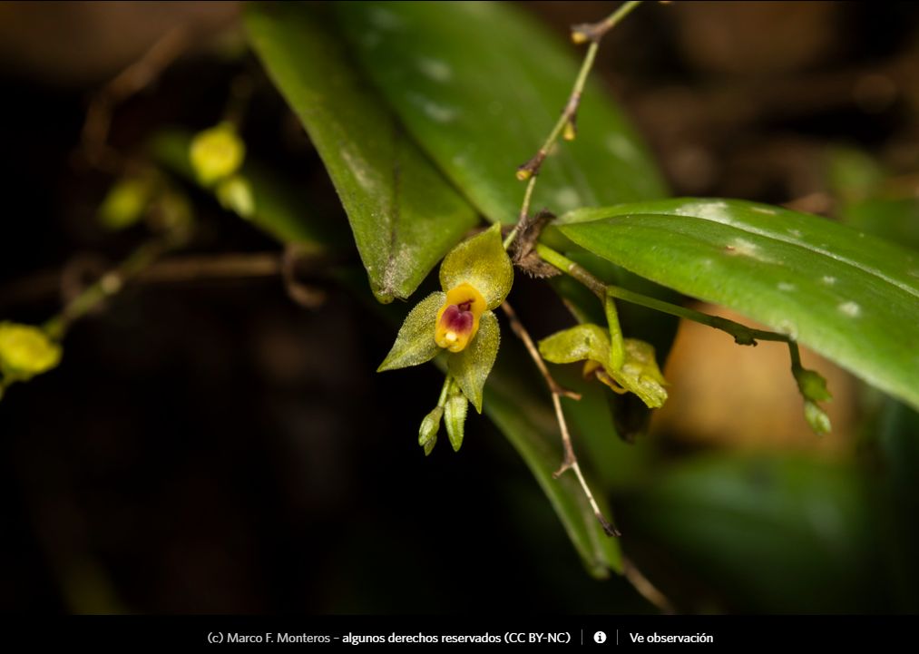 Found in Bolivar province of Ecuador on the western slopes of the Andes at elevations around 2650 to 3600 meters as a mini-miniature to small sized, cold growing epiphyte with erect, relatively stout ramicauls enveloped by 6 to 10, close lepanthiform sheaths with oblique ciliate ostia and carrying a single, apical, erect, coriaceous, narrowly elliptical, acute, cuneate below into the petiolate base leaf that blooms in the late spring through summer on 2 to 3, slender, loose, distichous, to 3.6" [9 cm] long, successively single, several flowered inflorescence.