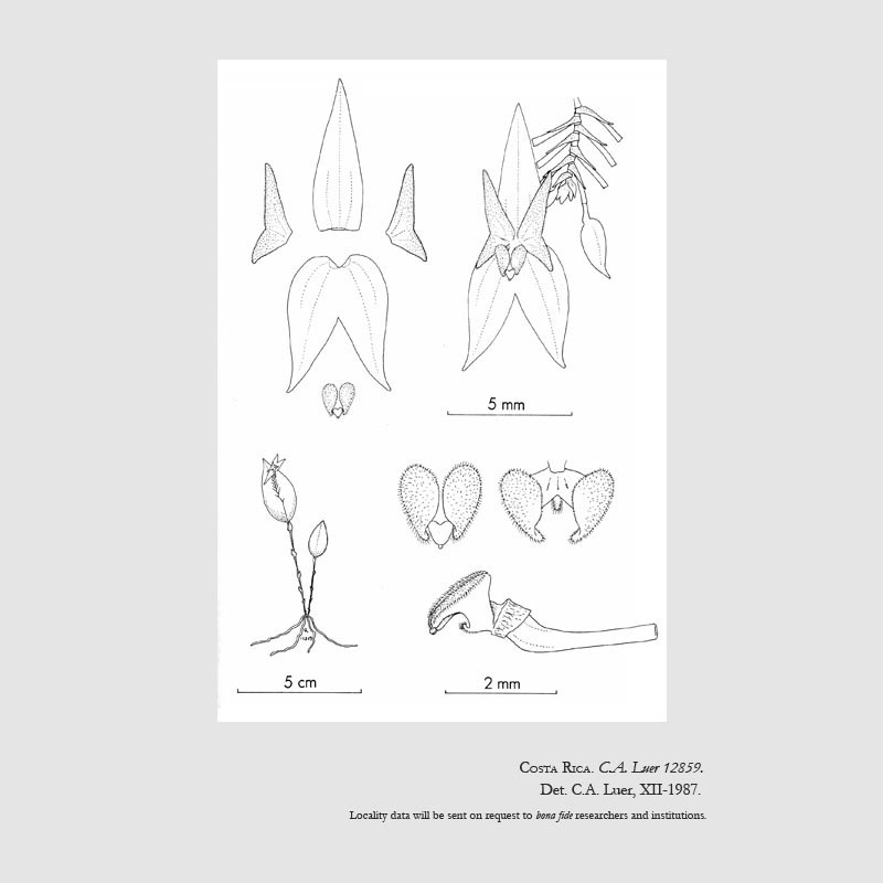 References W3 Tropicos, Kew Monocot list , IPNI ; Lankester's Epidendra Website CR CHECKED Type OK; Lindleyana 2(4): 191, 194. Luer 1987 drawing fide; Manual de Plantas de Costa Rica Vol 3 Hammel, Grayum, Herrera and Zamora 2003; AOS Bulletin Vol 74 No 12 2005 photo fide;