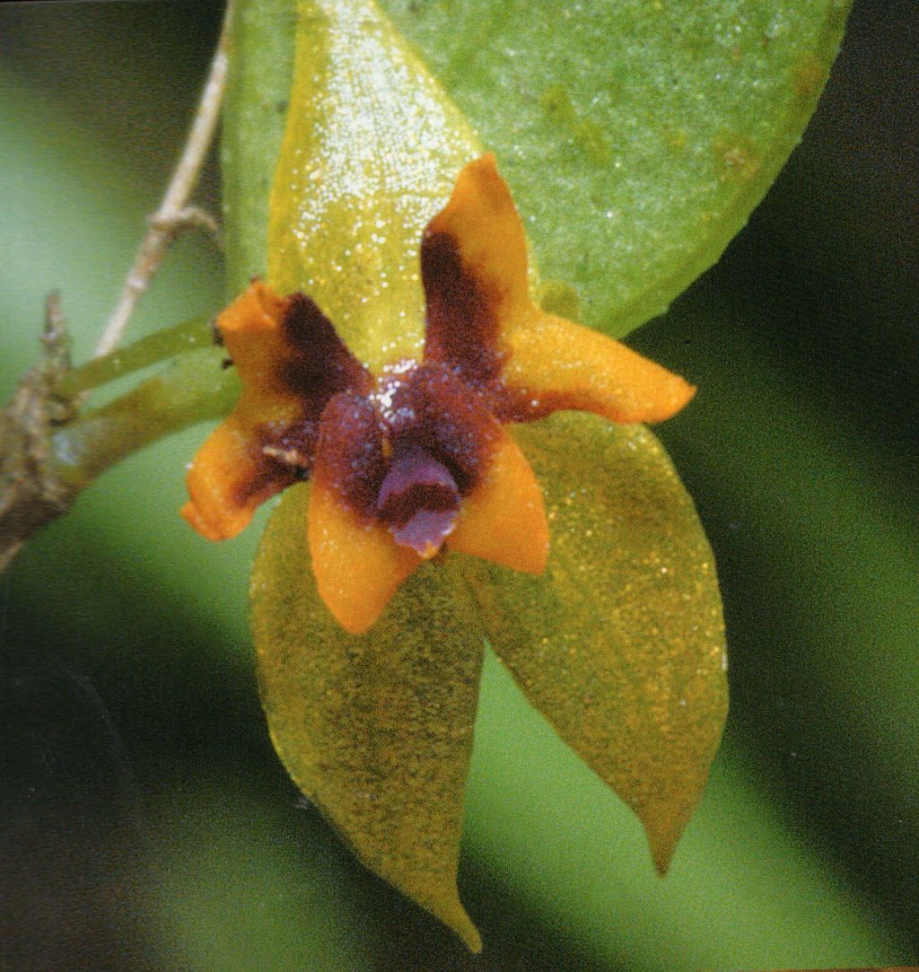 Found in Oriente province of Cuba at elevations around 1325 meters as a mini-miniature sized, cool growing epiphyte with slender, erect ramicauls enveloped by lepanthiform sheaths and carrying a single, apical, erect, coriaceous, narrowly ovate, obtuse, ciliate margined, cuneate and contracted below into the petiolate base leaf that blooms on a filiform, loose, lightly flexuous, to .48 to .6" [.45 to 1.5 cm] long , successively single, few flowered inflorescence.