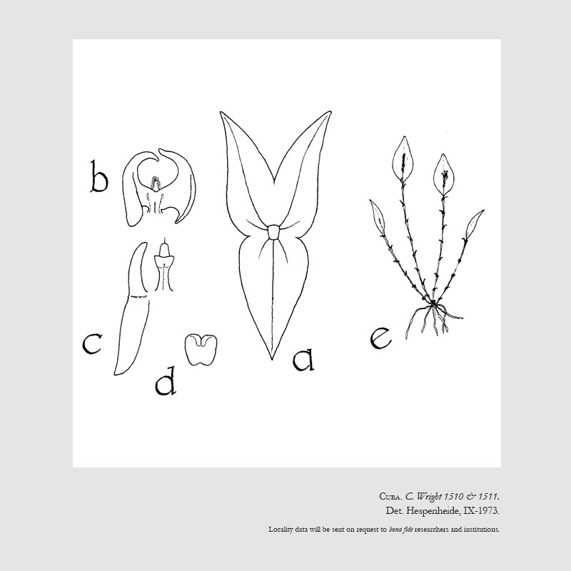 References W3 Tropicos, Kew Monocot list , IPNI ; *Brittonia 25(3): 272–273. Hespenh. 1973 drawing fide; The Orchids of Cuba Llamacho & Larramendi 2005 photo fide