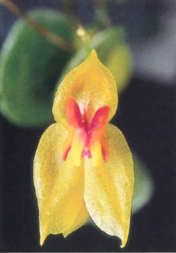 Found only in Guerrero and Oaxaca states of Mexico in oak/pine forests at elevations around 1800 to 2500 meters as a mini-miniature to miniature sized, cool to cold growing epiphyte with erect ramicauls enveloped by 3 to 5 lepanthiform sheaths and carrying a single, apical, widely elliptic to suborbicular, sometimes very narrow, apically rounded, diminutively tridentate, petiolate base leaf that blooms in the late spring through early fall on 1 to 4, only one per bloom season, always longer than the leaves, mostly arising on the back of the leaf, peduncle filiform, .16 to .28” [4 to 7 mm] long, single tubular bracted, rachis slightly flexuous, lax, 2.4” [6 cm] long overall, single to rarely 2, successively to 16 flowered inflorescence.