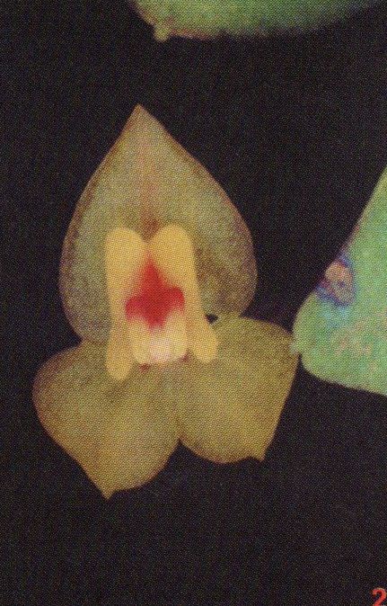 Found in western Guatemala at elevations around 2130 meters as a mini-miniature sized, cold growing epiphyte with erect ramicauls enveloped by 3 to 4, microscopically glandular lepanthiform sheaths and carrying a single, apical, erect, elliptic, tridenticulate apically, gradually anrrowing below intothe petiolate base leaf that blooms in the summer on a shorter thatn the leaf, .28 to .68" [7 to 17 mm] long, successively single, few flowered inflorescence.