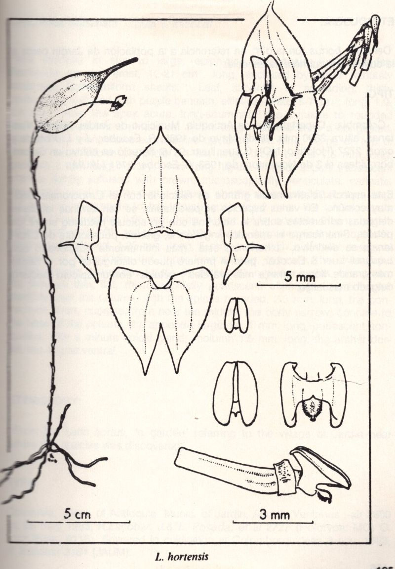 References W3 Tropicos, Kew Monocot list , IPNI ; *Orquideologia Vol 17 #3 1988 drawing/photo fide; Native Colombian Orchids Vol 5 COS 1994 photo fide; Icones Pleurothallidinarum Vol XXXII Luer 2012 drawing fide; Orchids A Colombian Treasure Vol 3 Ortiz & Uribe 2019 drawing/photo fide;