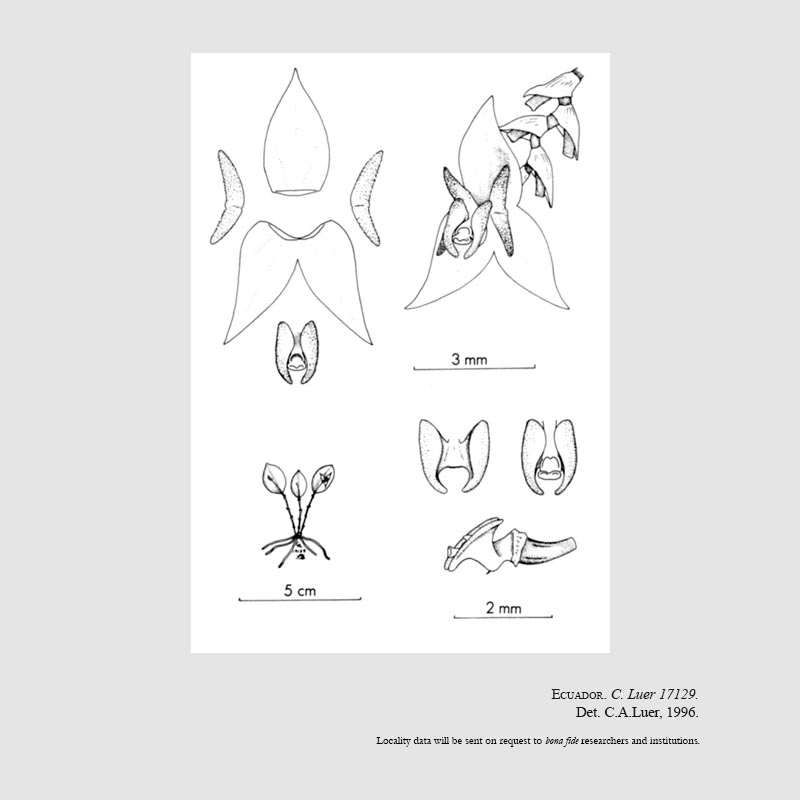 References W3 Tropicos, Kew Monocot list , IPNI ; *Icones Pleurothallidinarum Vol XIV Systematics of Draconanthes, Lepanthes subgenus Marsipanthes and subgenus Lepanthes of Ecuador Luer 1996 drawing fide; Flora of Ecuador No 88 Lepanthes and affiliates Dodson & Luer 2011 drawing not