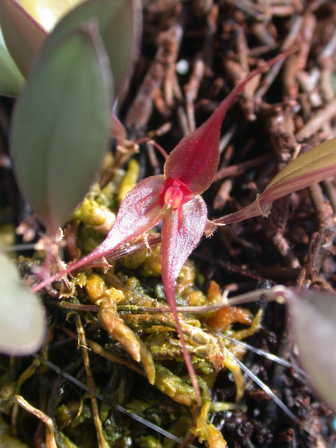 Found in south central Costa Rica at elevations around 3000 meters as a mini-miniature sized, cold growing epiphyte with erect, slender ramicauls enveloped by 5 to 7, closely appressed, microscopically ciliate lepanthiform sheaths with oblique dilated ostia and carrying a single, apicalo, erect, coriaceous, elliptical, acute, cuneate below into the petiolate base leaf that blooms in the late summer through early winter on an erect, slender peduncle, .32 to .4" [8 to 10 mm] long, loose, successicvley single, few flowered inflorescence with longer than the pedicels floral bracts.