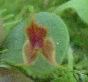 Found in Pinchincha province of Ecuador in cloud forests at elevations around 1650 meters as a mini-miniature sized, cool growing epiphyte with slender, erect, ramicauls enveloped by 7 to 10, minutely ciliate lepanthiform sheaths and carrying a single, apical, erect, thinly coricaeous, suffused with purple beneath, ovate, acute, shortly acuminate, rounded and contracted below into the petiolate base leaf that blooms in the spring on a filiform, congested, 1.28" [3 cm] long, successively flowered inflorescence arising on top of the leaf with cilate floral bracts.