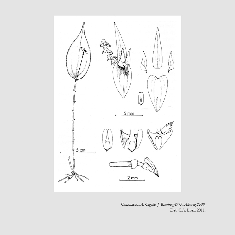 References W3 Tropicos, Kew Monocot list , IPNI ; * Harvard Pap. Bot. 16(2): 334-335. 2011 Drawing fide; Orquideología 22(1): 38-42 Luer 2001 Drawing fide; Icones Pleurothallidinarum Vol XXXII Luer 2012 drawing fide;