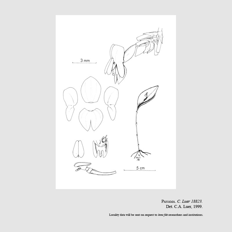 References W3 Tropicos, Kew Monocot list , IPNI ; *Icones Pleurothallidinarum Vol XVIII Systematics of Pleurothallis subsection Antenniferae, Longiracemosae, Macrophyllae-Racemosae and Subgenera Pseudsostelis and Acuminata Luer 1999 drawing fide;