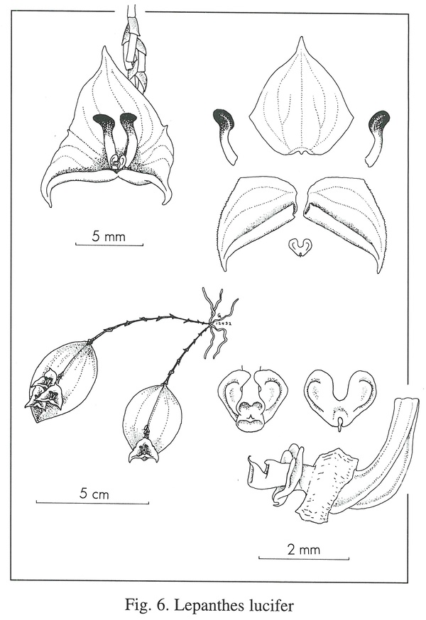 References W3 Tropicos, Kew Monocot list , IPNI ; *AOS Bulletin Vol 56 No 10 1987 drawing/photo fide; AOS Bulletin Vol 64 No 10 1995 photo fide; Icones Pleurothallidinarum Vol XIV Systematics of Draconanthes, Lepanthes subgenus Marsipanthes and subgenus Lepanthes of Ecuador Luer 1996 drawing fide; Icones Orchidacearum Peruviarum Plate 483 Bennett & Christenson 1998; Native Ecuadorian Orchids Vol 2 Dodson 2001 photo fide; Orchid Digest Vol 83 #3 2019 photo fide; AOS Bulletin Vol 89 #11 2020 photo fide;
