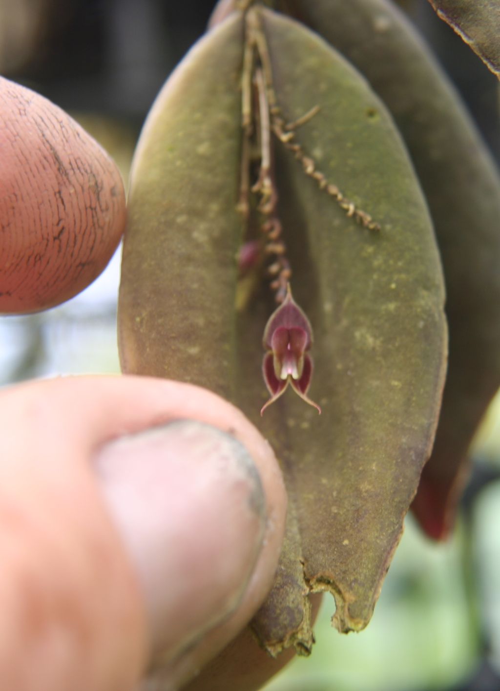 The first photo is an exact match to Luers original descriptions of L mastodon [and photo in Native Colombian Orchids Vol 2 COS] and subsequent redescription of L manabina in Icones Pleurothalidinarum XIV.