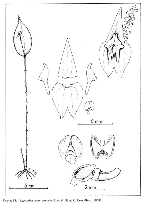 Lepanthes membranacea Luer & Hirtz 2009 SECTION Lepanthes SUBSECTION Lepanthes SERIES Mucronatae Luer 1996