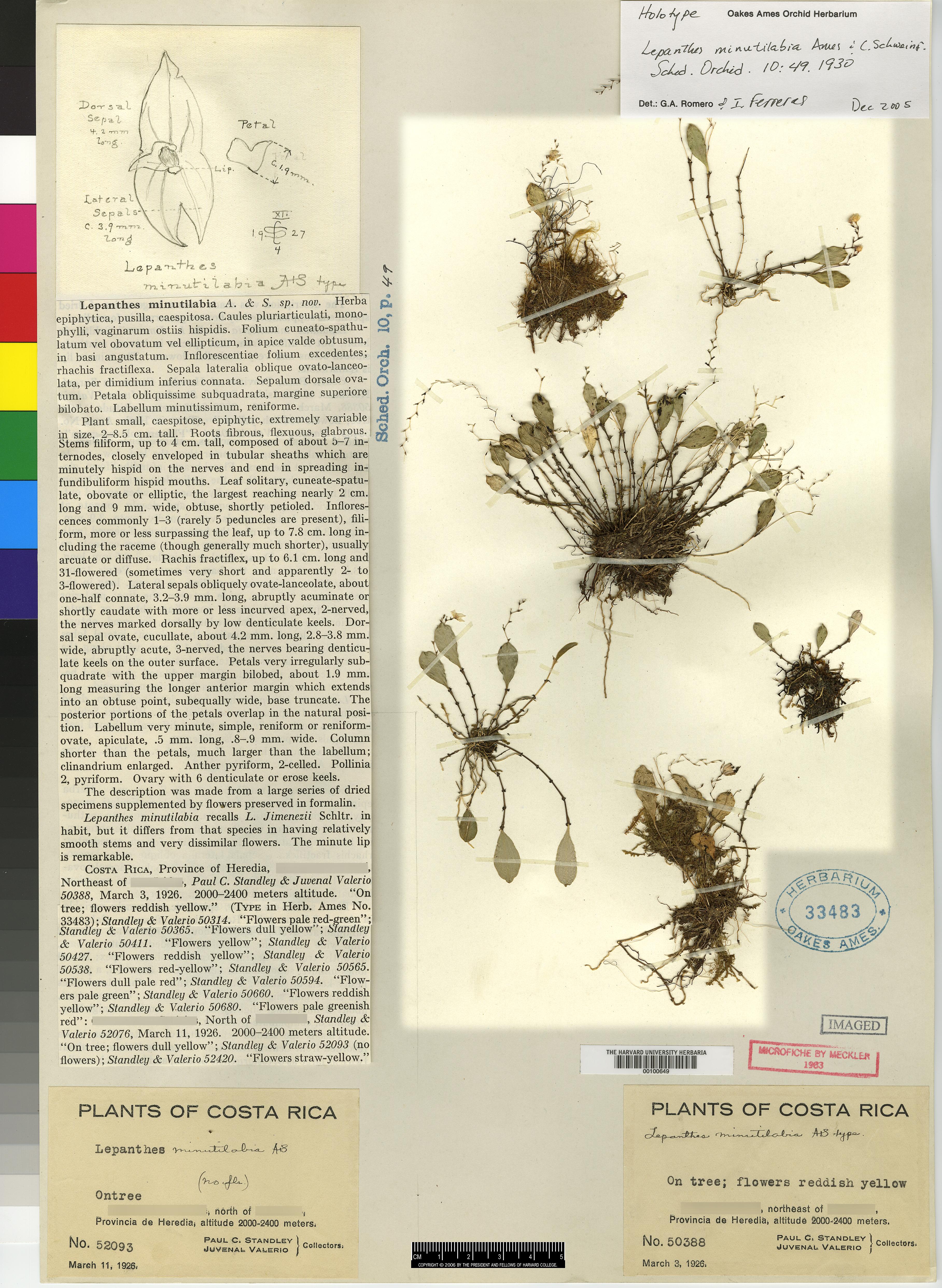 Lepanthes minutilabia Ames & C.Schweinf. 1930 SECTION Lepanthes SUBSECTION Lepanthes SERIES Elongatae 1993