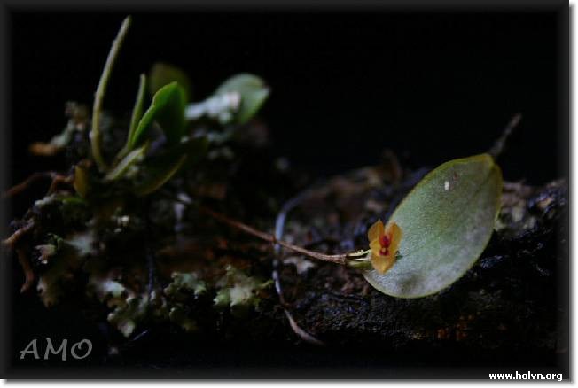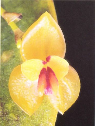 Found in Mexico in montane rainforests at elevations around 1600 to 2500 meters as a mini-miniature sized cool to cold growing epiphyte with slender, erect, ramicauls enveloped by 6 to 8, adpressed lepanthiform sheaths with dilated, ciliate margined ostia and carrying a single, apical, spreading, coriaceous, ovate-elliptical, acute shortly acuminate, tridenticulate, broadly cuneate and abruptly contracted below into the petiolate base leaf that blooms in the spring through fall on 1 to 2, slender, congested, distichous, to .6" [1.5 cm] long, successively several to many flowered inflorescence arising on the back of the leaf.