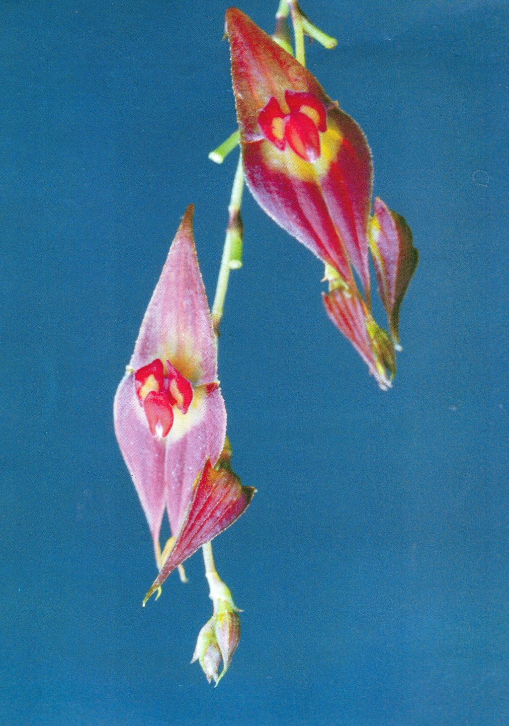 " L rhombipetala, now recognized as distinct from L nanegalensis has been treated as a synonym of the later by Luer 1996b, but the 2 are sufficiently different to recognize both. L rhombipetala is a robust species and occurs in southern Colombia and northern Ecuador while L nanegalensis is not known outside of Ecuador. L rhombipetala is characterized by the large zize, ovate-acuminate leaves, and a gradually lengthening, long-lasting, loosely flowered inflorescnewce that eventually exceeds the leaf, The sepals of the dark colored flowers are acute, and acuminate, the lateral sepals are deeply connate into a narrowly triangular, shortly bifid synsepal. The petals are small and rhomboid, with the opposite lobes short and obtuse. The blades of the lip are narrowly ovate, the connectives are short and cuneate and the minute appendix is delicate and pedunculate with a bi-glandular terminal segment. The flowers of L deliciasensis are also shaped like an elongated diamond, with the dorsal sepal and synsepal nearly identical, but the latter is distinguished by its concave dorsal sepal and petals with the apex of the upper lobe narrow and everted." Luer 2012
