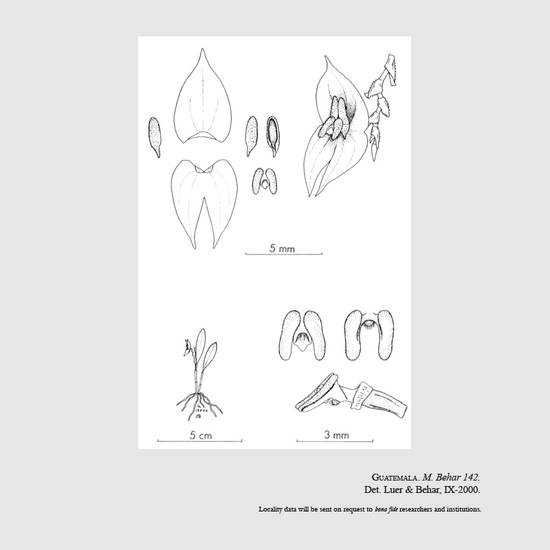 References W3 Tropicos, Kew Monocot list , IPNI * Orquideología 21(3): 318–321, f. Luer & Behar 2000 drawing/photo fide; Lepanthes de Guatemala Archila 2001 drawing/photo fide; Orchid Genera and Species in Guatemala Archila, Szlachchetko, Chiron, Lipinska, Mystkowska and Bertolini 2018
