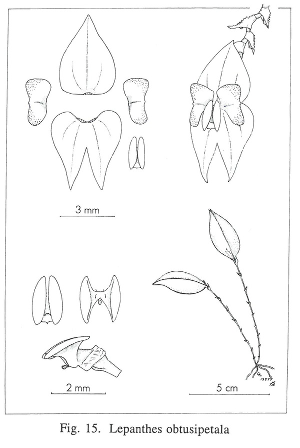 Lepanthes obtusipetala (Fawc. & Rendle) Fawc. & Rendle 1910 Drawing by © Carl Luer and The Swiss Orchid Foundation at the Jany Renz Herbaria Webpage