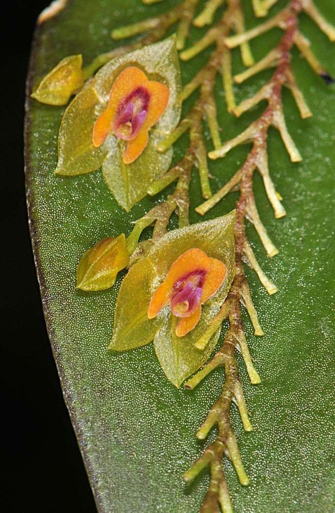 Found in Jamaica as a miniature, caespitose, unifoliate, hot to warm growing epiphytic species occuring at elevations of 700 to 800 meters with erect ramicauls enveloped completely by tubular, longitudinally nerved, dilated, muricate lepanthiform sheaths and carrying a single, apical, membraceous, ovate to narrowly ovate, shortly and widely acuminate, finely tridenticulate apically, widely round and cuneate into the petiolate base leaf that blooms with a fascicle of filiform, distally distichously, 1" to 2" [2.5 to 5 cm] long including the .4 to 1" [1 to 2.5 cm] long peduncle, densly few to several flowered, racemose inflorescence that are shorter than the leaves and having minute flowers occuring at any time of the year.