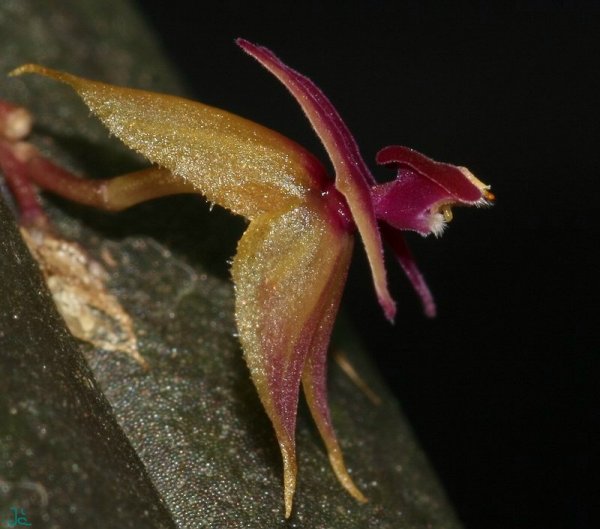 "Distinguished by the congested raceme borne behind an elliptical, acuminate leaf. The sepals are acuminate, but most distinctive are the two narrowly triangular and acuminate lobes of the petals. The blades of the lip are oblong and the appendix is thick and long-pubescent. Similar to L urotepala but it has obtuse lateral sepals and the upper lobes of the petals are much longer and more attenuated." Luer 1996