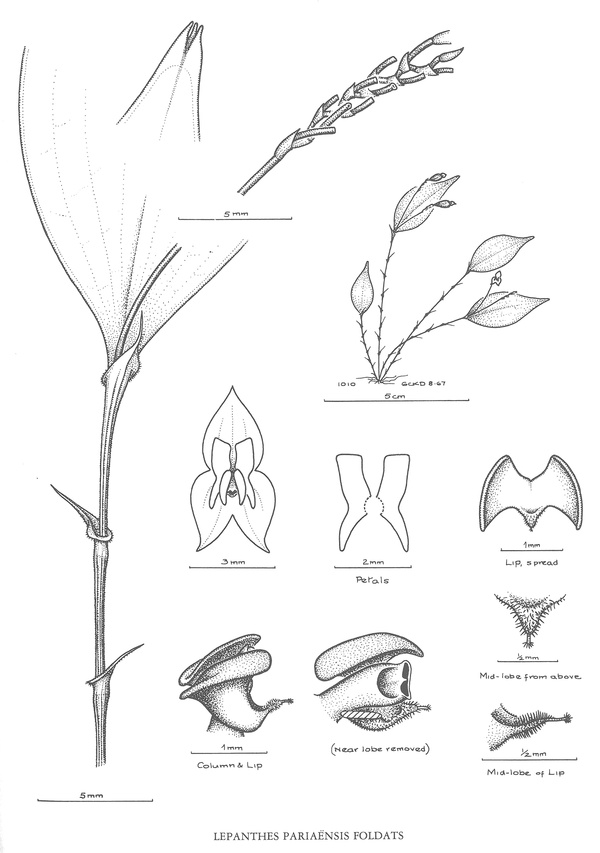Lepanthes pariaensis Foldats 1968 Drawing by © Dunsterville and Garay and The Swiss Orchid Foundation at the Jany Renz Herbaria Webpage