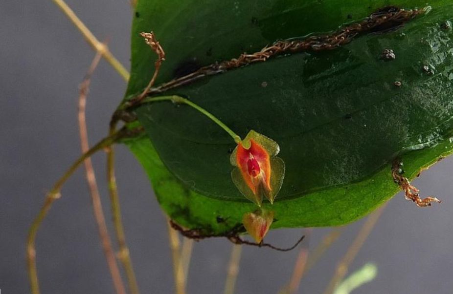 Found in Valle de Cauca Department of Colombia and western Ecuador at elevations around 650 to 1300 meters as a miniature sized, warm growing epiphyte with a slender, erect ramicaul enveloped by 6 to 11, tight fitting, microscopically ciliate lepanthiform sheaths carrying a single, apical, suberect, thinly coriaceous, ovate, obtuse to long acuminate, rounded and abruptly contracted below into the petiolate base leaf that blooms in the spring on a filiform, congested, distichous, to .72" [1.8 cm] long, successively many flowered inflorescence arising on the back of the leaf and carrying muricate floral bracts.