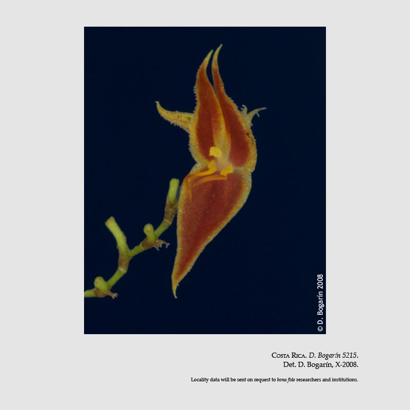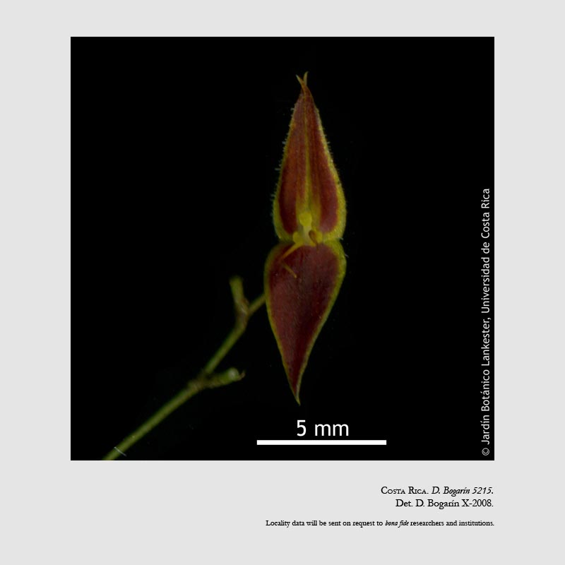 References W3 Tropicos, Kew Monocot list , IPNI ; Lankester's Epidendra Website CR Checked Type OK; *Harvard Pap. Bot. 6: 289. 2001; Manual de Plantas de Costa Rica Vol 3 Hammel, Grayum, Herrera and Zamora 2003; Vanishing Beauty, Native Costa Rican Orchids Vol 2 Lacaena to Pteroglossa Pupulin 2020 photo fide