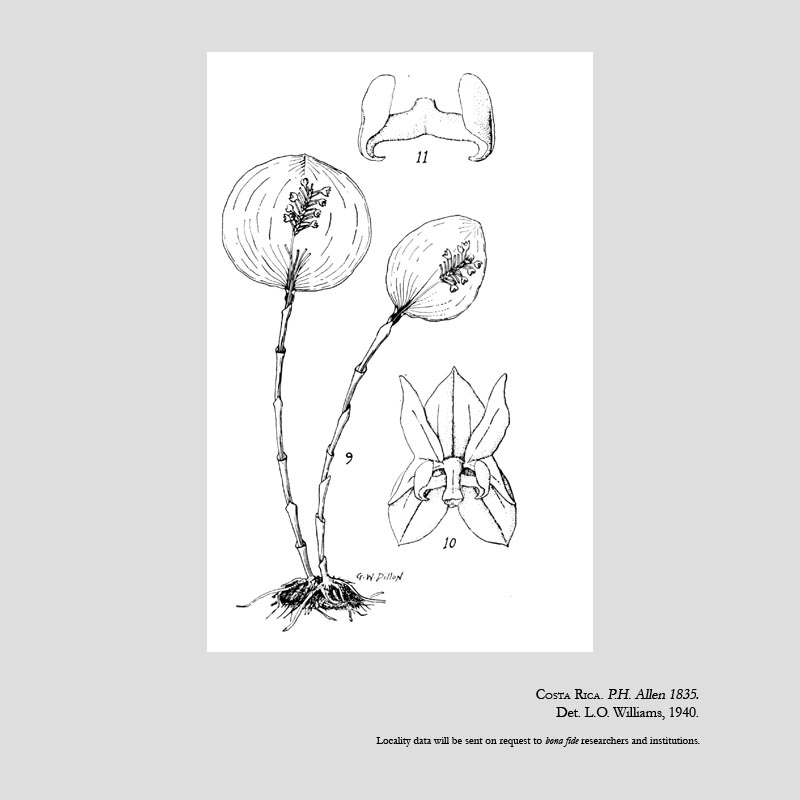 References W3 Tropicos, Kew Monocot list , IPNI ; Lankester's Epidendra Website CR Checked Type fide; *Ann. Missouri Bot. Gard. 27: 275. 1940; The Orchids of Panama L.O. Williams & P Allen 1946 drawing fide; Encyclopedia of Cultivated Orchids Hawkes 1965; Icones Planetarum Tropicarum plate 129 Dodson 1980 drawing fide