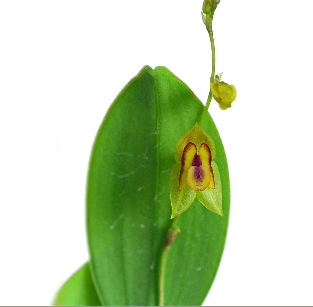 Found in Loja province of Ecuador in cloud forests at elevations around 3100 meters as a miniature [each individual plant] sized, cold growing scandent epiphyte with a slender, erect, prolific ramicaul enveloped by 6 to 8, close lepanthiform sheaths with minutely ciliate ostia and carrying a single, apical, erect, coriaceous, elliptical, acute, cuneate below into the petiolate base leaf that blooms in the spring on a filiform, subdense, distichous, lightly flexuous, 1.6" [4 cm] long, successively single, several flowered inflorescence.