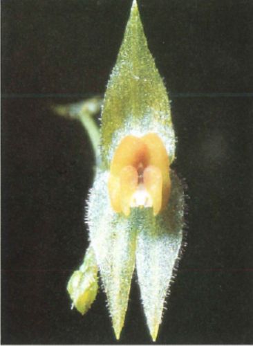 Found only in Oaxaca state of Mexico in secondary cloud forests at elevations around 2000 to 2600 meters as a mini-miniature sized, cold growing epiphyte with ascending, erect ramicauls enveloped by 3 to 6 lepanthiform sheaths and carrying a single, apical, elliptic to elliptic-lanceolate, acute to rarely rounded apically, tridentate, distinctly petiolate base leaf that blooms at any time of the year on 1 to 3, only 1 per bloom season, 2 to 6 times longer than the leaf, mostly on the top of the leaf, peduncle filiform, .4 to .6” [1 to 1.5 cm] long, single tubular bracted, rachis arcuate, lax, .8 to 2.2” [2 to 5.5 cm] long overall, successively single, 2 to 4 flowered inflorescence.